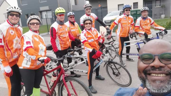 Françoise et Alain, Philippe et Stéphane, Xavier B. et Christian, Colette et Franck ont d’abord pris la direction de Longueau pour se diriger chez notre président, Joseph MBONGO en passant par Glisy, Blangy, Gentelles pour finir à Thézy-Glimont. Voyant la voiture de ce dernier, ils en ont profité pour lui faire un petit coucou et ce selfie. (Vous le voyez, il est ravi !)